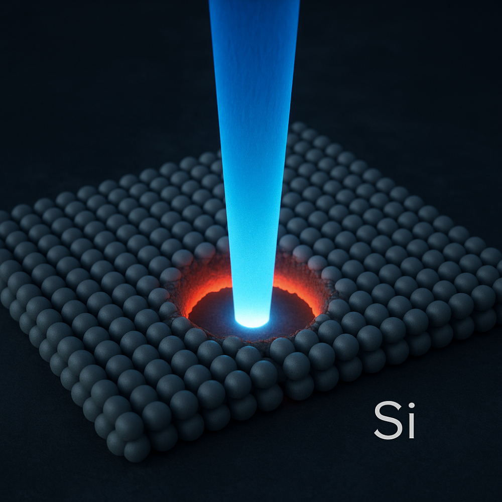 要約:これまで困難だった「シリコン薄膜にフェムト秒レーザーを照射し、原子レベルで穴が形成される過程」を、DeepMD + LAMMPS + GPUサーバーという最新スタックで再現する試みが始まりました。この記事は本編シリーズの予告編です。